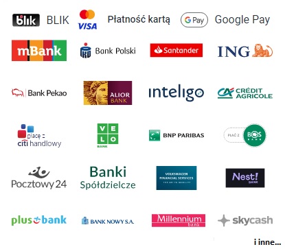 - Płatności elektroniczne i płatności kartą płatniczą za pośrednictwem serwisu BLIK oraz Przelewy24.pl – możliwe aktualne sposoby płatności określone są na stronie Sklepu Internetowego w zakładce informacyjnej dotyczącej sposobów płatności oraz na stronie internetowej https://blik.com/ oraz https://www.przelewy24.pl/.